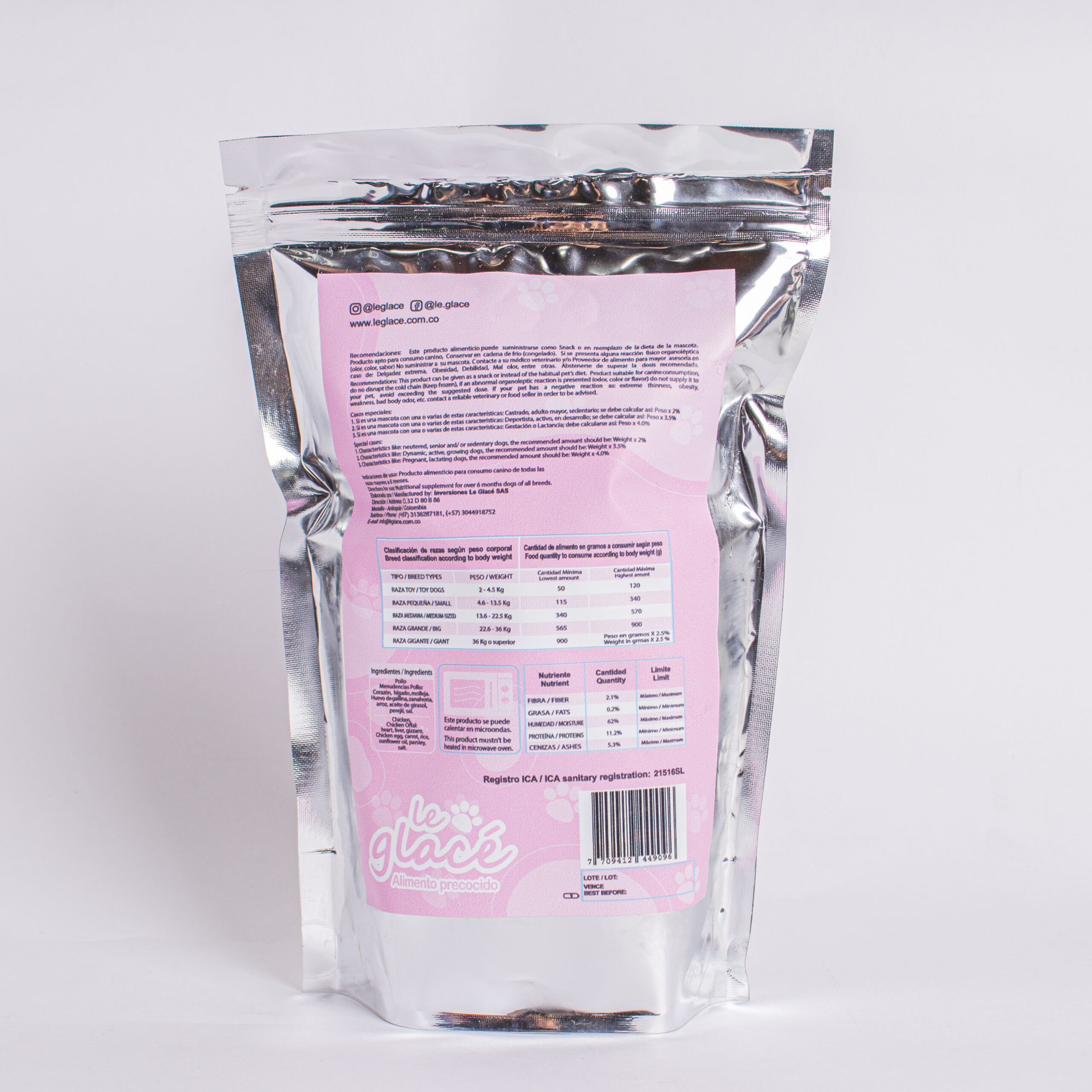 Snack con pollo congelada a baja temperatura para perros, alta palatabilidad. Componente natural que aportan proteína. Por el tamaño de las porciones, estos snacks no son una fuente significativa de alimento.